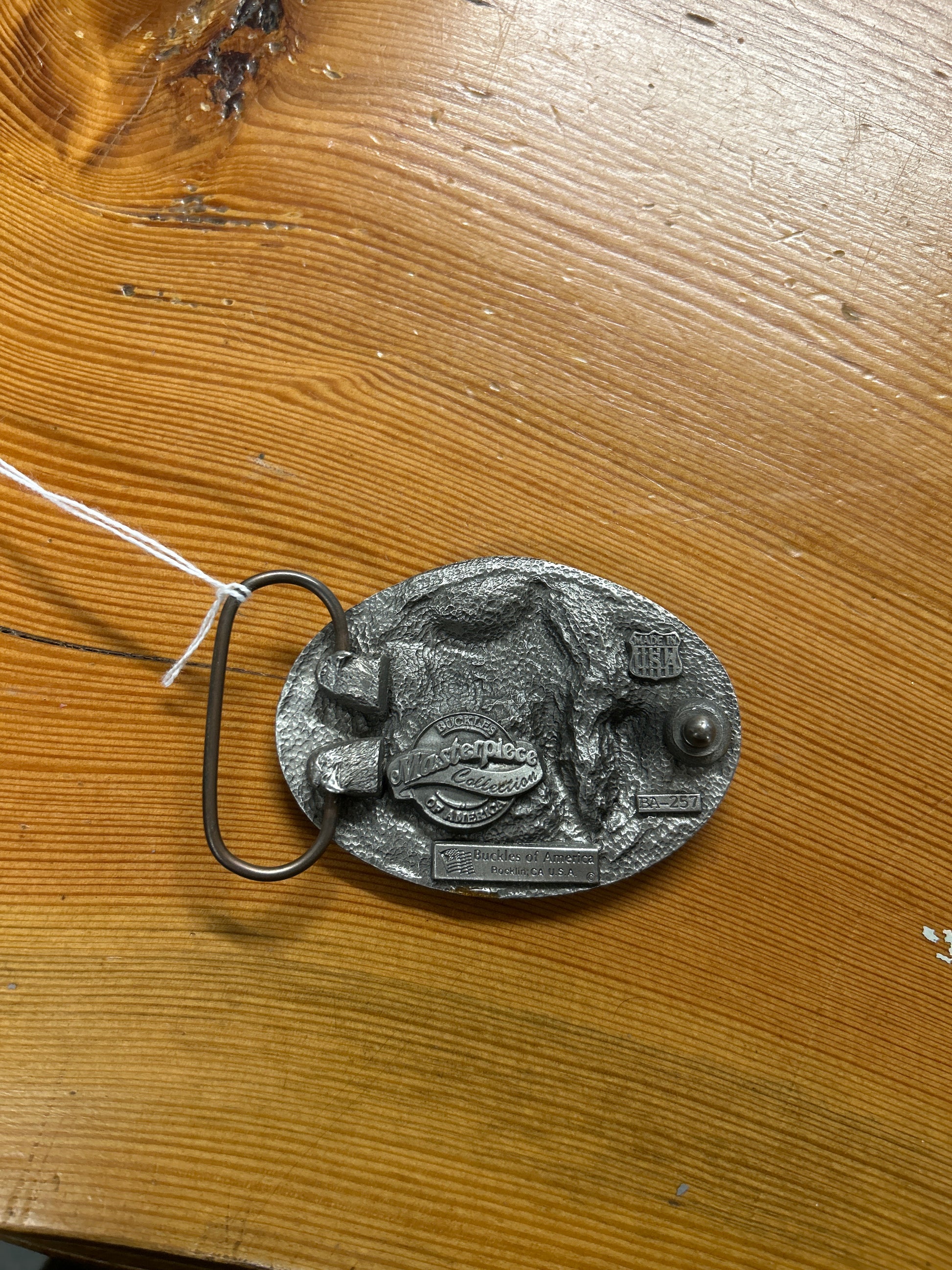 Western Belt Buckle with Western Saddle, Boots, Lasso, Bit, Spurs and Cowboy Hat, Made by Buckles of America - Masterpiece Collection - RA257