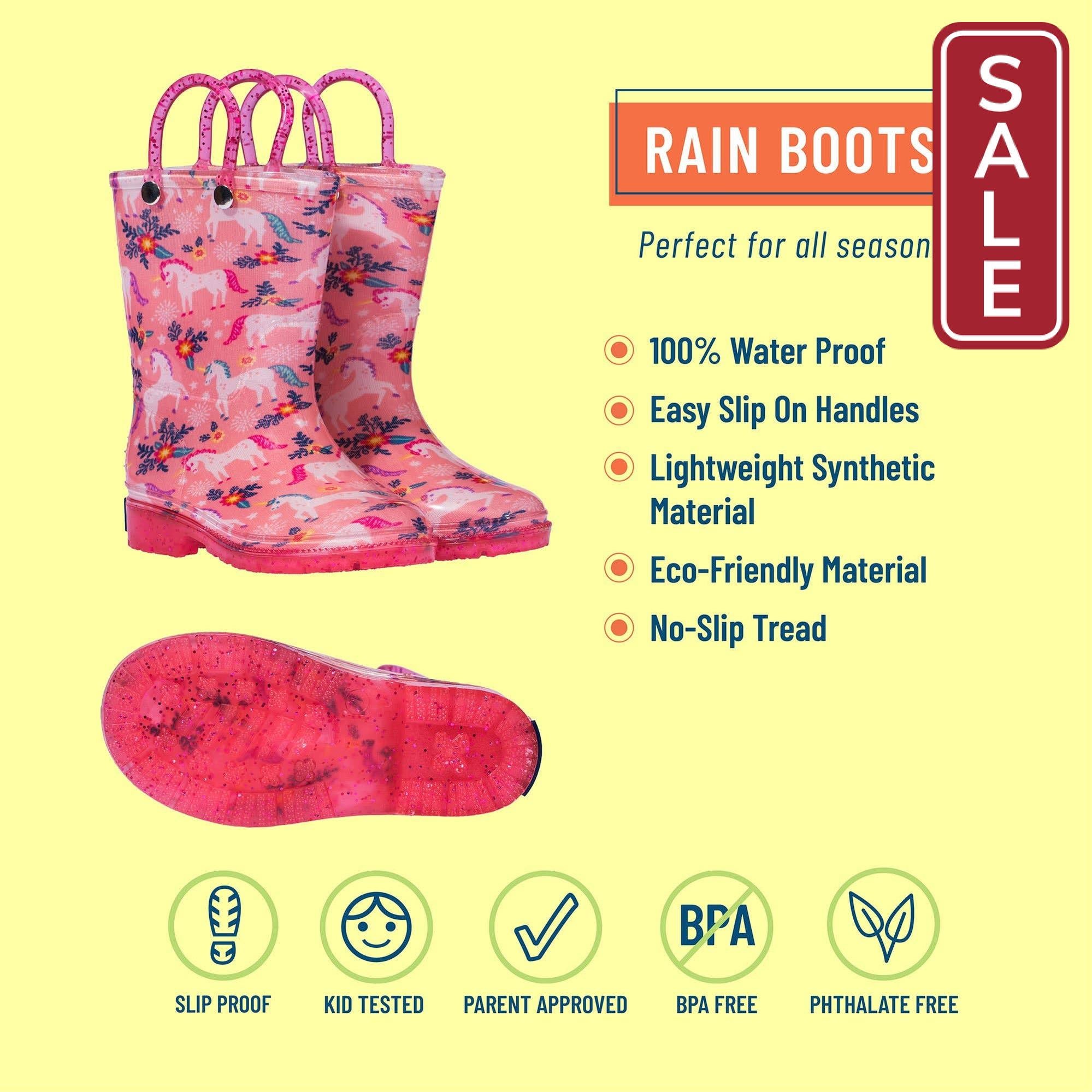 Add some sunshine to your child's step! Rainy days are so much fun in Wildkin's waterproof rain boots. Available in your favorite prints, they're super lightweight and perfect for puddle hopping.