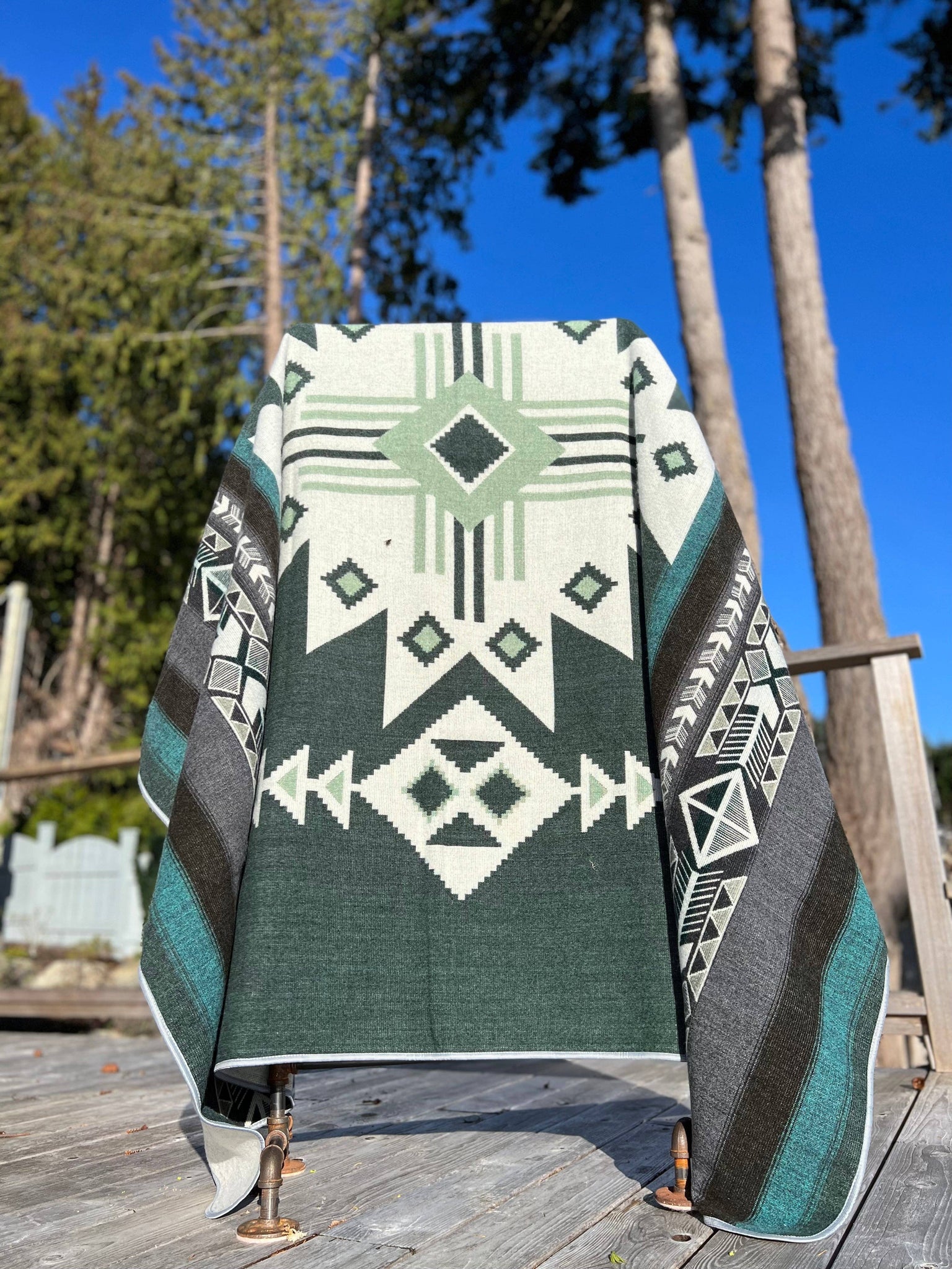 Crafted from a recycled acrylic blend with clean trim edges, this blanket is ultra-soft, lightweight, and designed for all-season comfort. The striking Aztec-inspired design is fully reversible, offering two distinct looks in one, making it as versatile as your lifestyle—an accent for your bedroom, a cozy companion for movie nights, or a trusted travel blanket for spontaneous adventures.