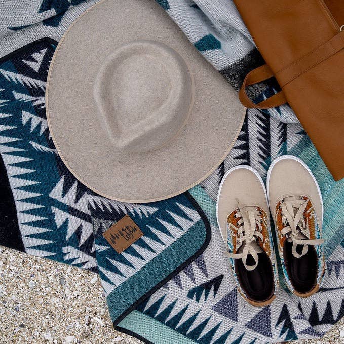 Made from a recycled acrylic blend with clean, reinforced trim edges, these blankets are ultra-soft, lightweight, and designed to keep you cozy year-round without added bulk. Their reversible Aztec-inspired pattern offers two stunning looks in one—perfect for styling your home or bringing along on adventures.